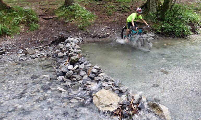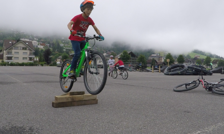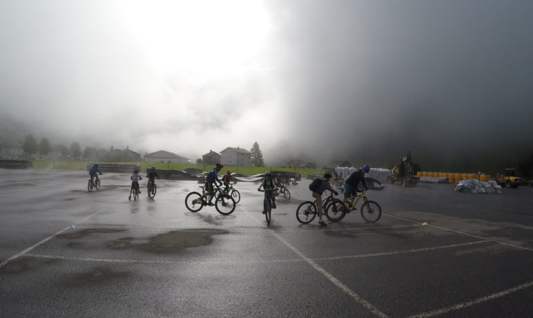 Vertiefung der Biketechnik mit spielerischen Übungen und dem Pumptrack. Ausfahrt auf den Singletrails rund um die Gerschnialp. Wir waren fast den ganzen Tag trocken! 😉
