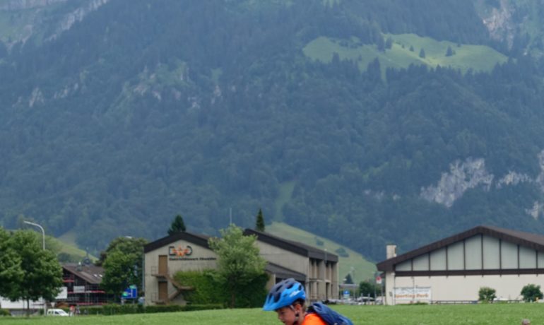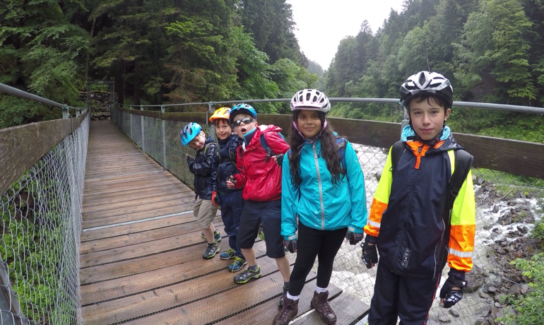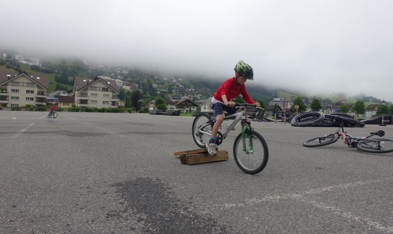 Technikübungen; richtig Bremsen, Schalten und Gleichgewicht. Ausfahrt zum Alperösli und erste Singletrailerfahrungen! Das feine Glace und Grillieren durfte beim warmen Wetter natürlich auch nicht fehlen…:)