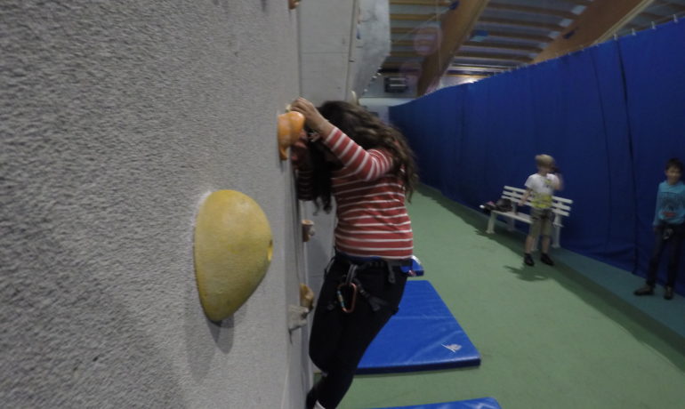 Ausflug in die Kletterhalle im Sportingpark. Wegen den kalten Temperaturen kletterten wir an der steilen Wand. Ausbildung mit Seil und Karabiner. Ausfahrt nach Grafenort und mit Zug zurück.